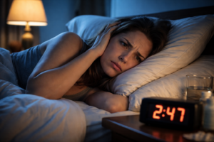Stress and racing thoughts are common sleep blockers.