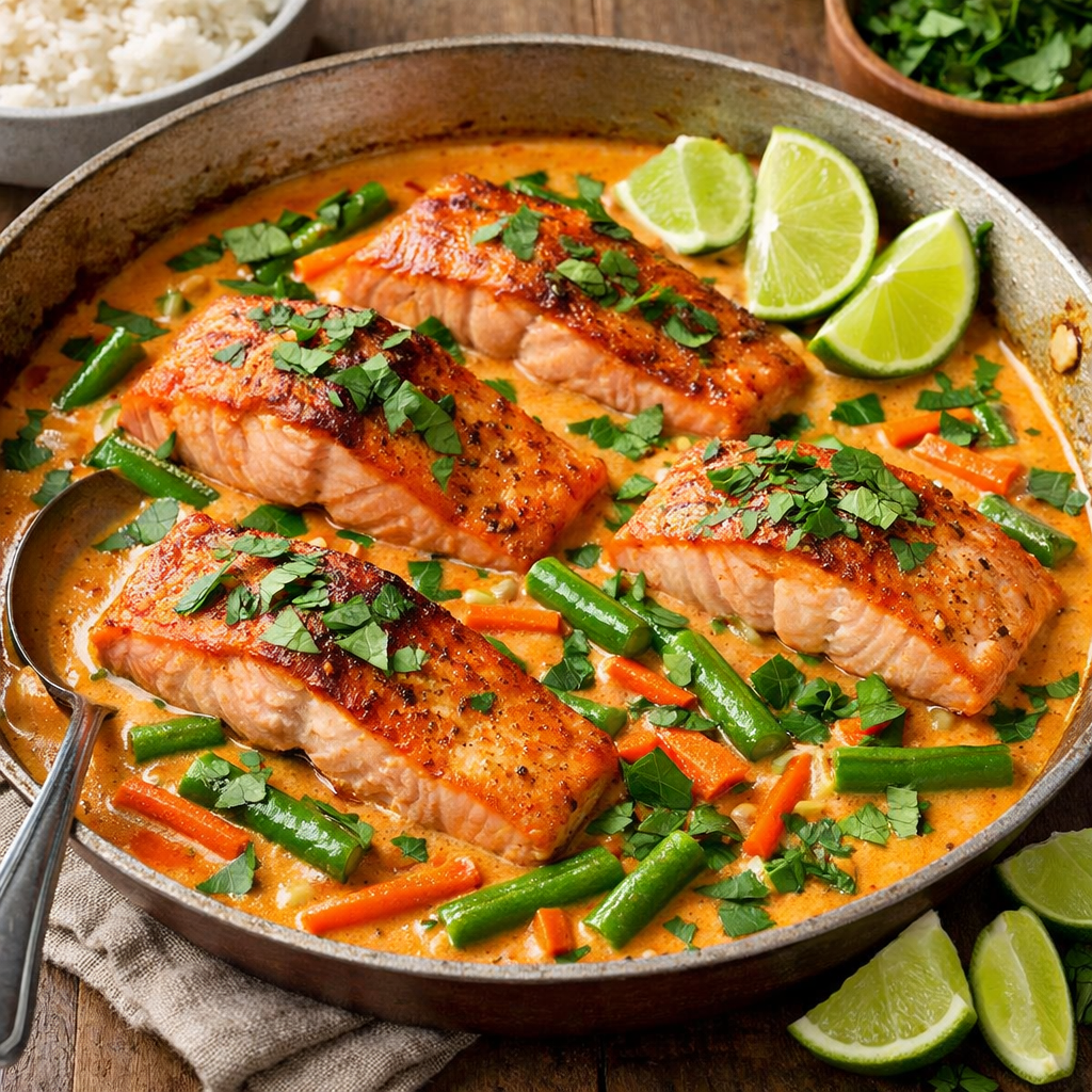 If your week needs a little glow-up, this Thai-inspired salmon coconut curry is the move. We’re talking golden pan-seared salmon tucked into a creamy red curry coconut sauce that’s spicy, cozy, and wildly addictive—in the best way. Bonus: it’s on the table in about 35 minutes, which means you can have “wow” flavor without the “who has time?” energy.Vibe: Comforting, bright, a little sassy (thanks, curry paste)